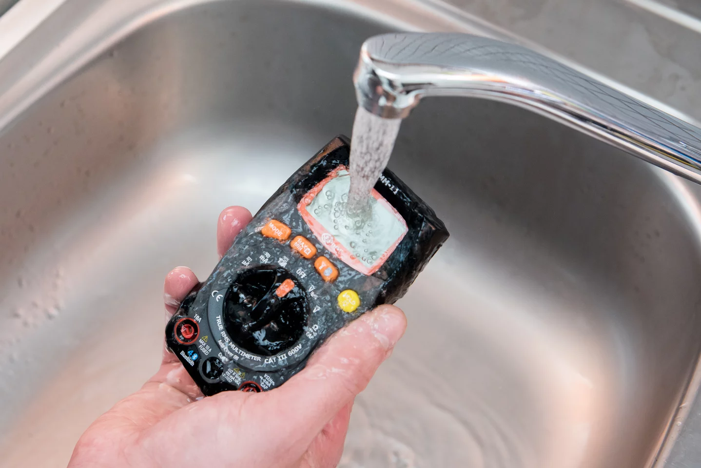 La carcasa ha sido especialmente diseñada para utilizar el dispositivo durante el trabajo sobre el terreno. El grado de protección a un nivel IP65 protege el dispositivo frente a la entrada de polvo y partículas, así como a un derrame accidental de un chorro de agua.