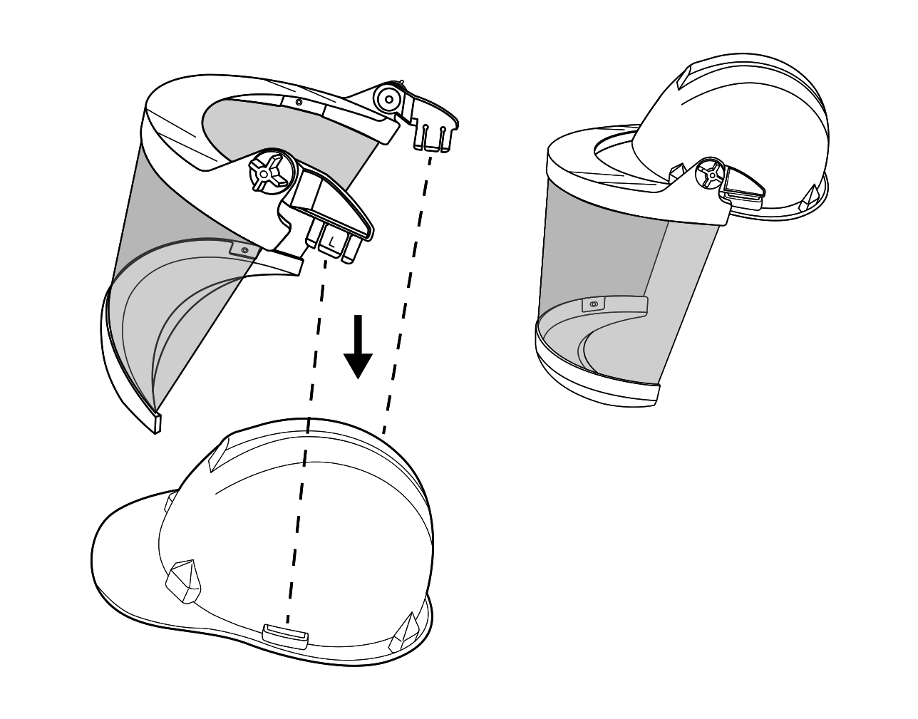 Solo con cascos de seguridad ranurados, donde se puede montar firmemente su soporte visera.